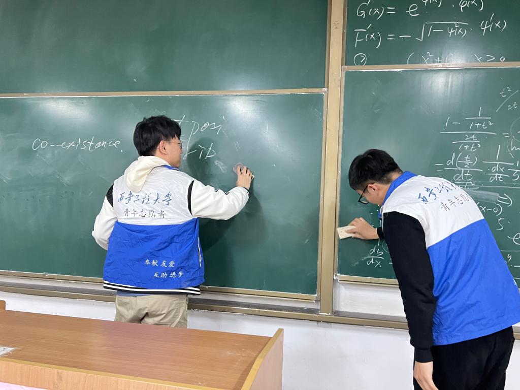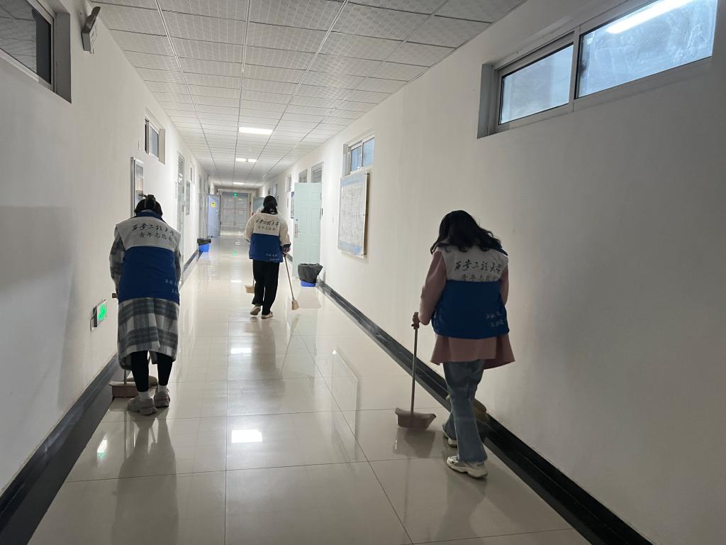 學院團總支書記賈天昱對此次活動的開展進行了詳細安排與分工,志愿者們在教室、實驗室等區(qū)域做了垃圾清理、消除粉塵等工作,志愿者們分工明確,不怕臟不怕累,積極主動地投身于校園清潔的活動中。