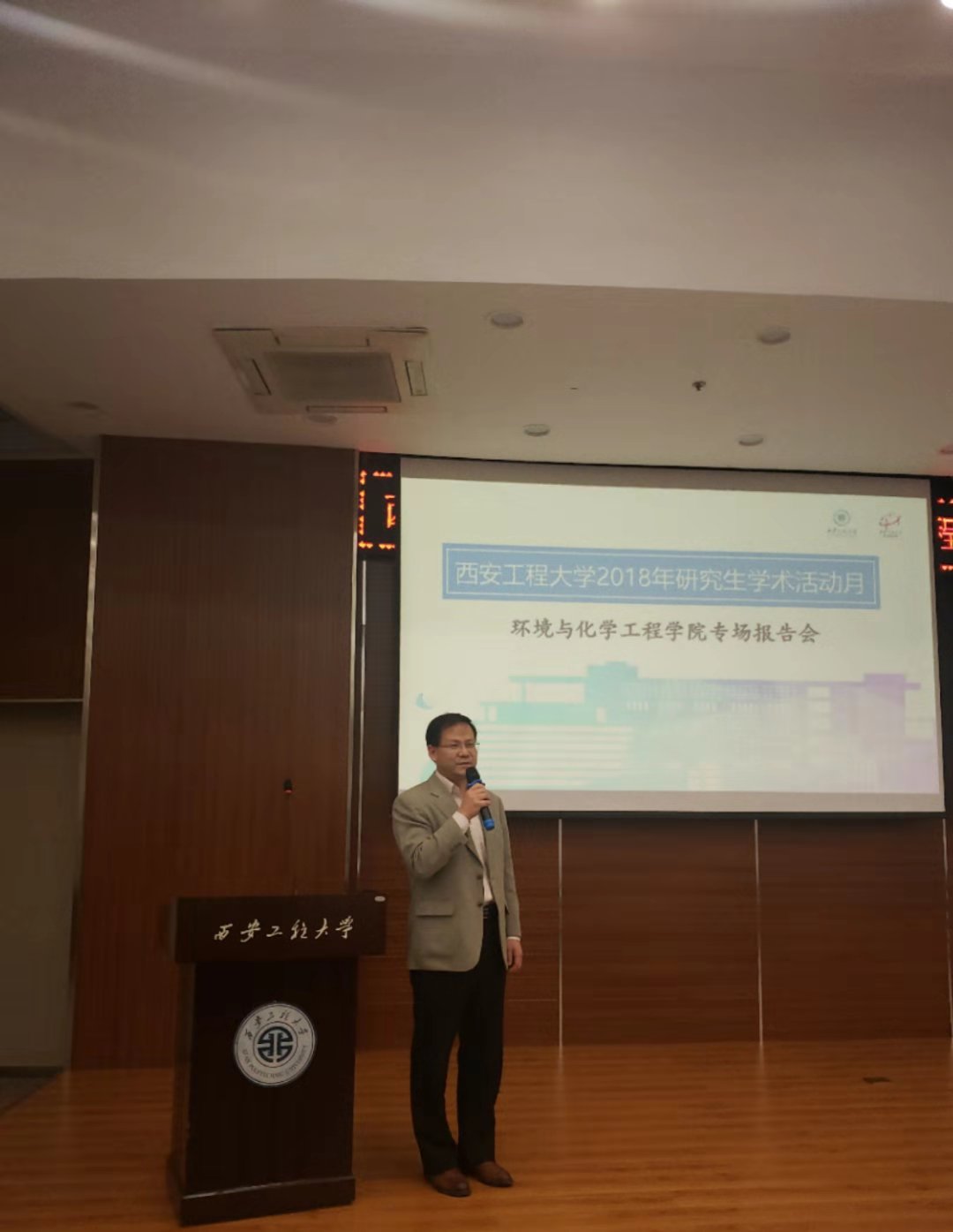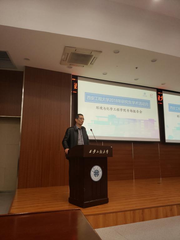 10月24日下午,西安工程大學(xué)2018年“研究生學(xué)術(shù)活動月”環(huán)境與化學(xué)工程學(xué)院專場報告會在臨潼校區(qū)圖書館二樓報告廳舉行。副校長樊增祿、研究生工作部部長李偉、研究生院副院長傅博娜,學(xué)院黨委書記李建學(xué)、執(zhí)行院長張洛紅、副院長常薇、副書記賴斌,導(dǎo)師李海紅,研究生輔導(dǎo)員林定武,學(xué)院研究生、本科生共計兩百余人參加了此次活動。活動由環(huán)境與化學(xué)工程學(xué)院2017級研究生郭楊昭主持。