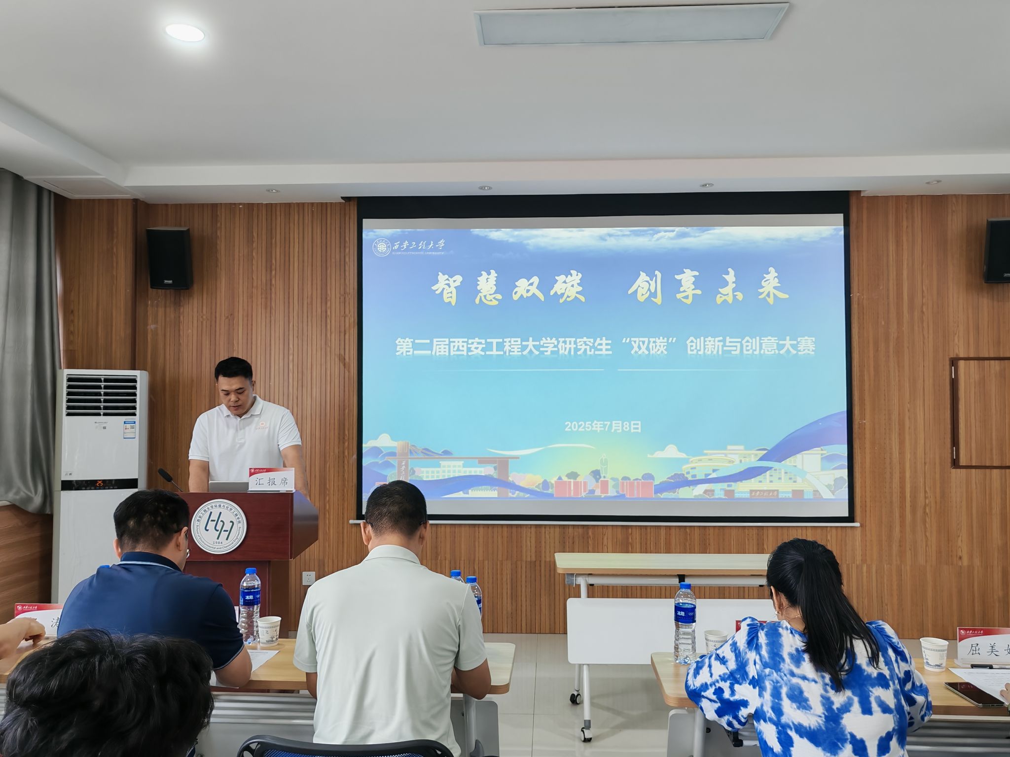 2025年7月8日,由校黨委研究生工作部、研究生院舉辦,環(huán)境與化學(xué)工程學(xué)院承辦的第二屆中國(guó)研究生“雙碳”創(chuàng)新與創(chuàng)意大賽校內(nèi)選拔賽在臨潼校區(qū)成功舉辦。本次大賽以“創(chuàng)新驅(qū)動(dòng)發(fā)展,創(chuàng)意引領(lǐng)未來(lái)”為主題,旨在培養(yǎng)研究生的創(chuàng)新意識(shí)和實(shí)踐能力,助力國(guó)家“雙碳”戰(zhàn)略目標(biāo)的實(shí)現(xiàn)。大賽邀請(qǐng)到來(lái)自多所高校的知名專(zhuān)家組成評(píng)審委員會(huì),包括西安建筑科技大學(xué)環(huán)境與市政工程學(xué)院王旭東教授、長(zhǎng)安大學(xué)水利與環(huán)境學(xué)院張倩倩副教授等校外專(zhuān)家,以及我校環(huán)境與化學(xué)工程學(xué)院李慶教授、西安工程大學(xué)城市規(guī)劃與市政工程學(xué)院楊濤副教授、機(jī)電工程學(xué)院屈美嬌副教授等校內(nèi)專(zhuān)家。環(huán)化學(xué)院院長(zhǎng)武占省教授、黨委副書(shū)記林定武老師等領(lǐng)導(dǎo)蒞臨指導(dǎo)。
