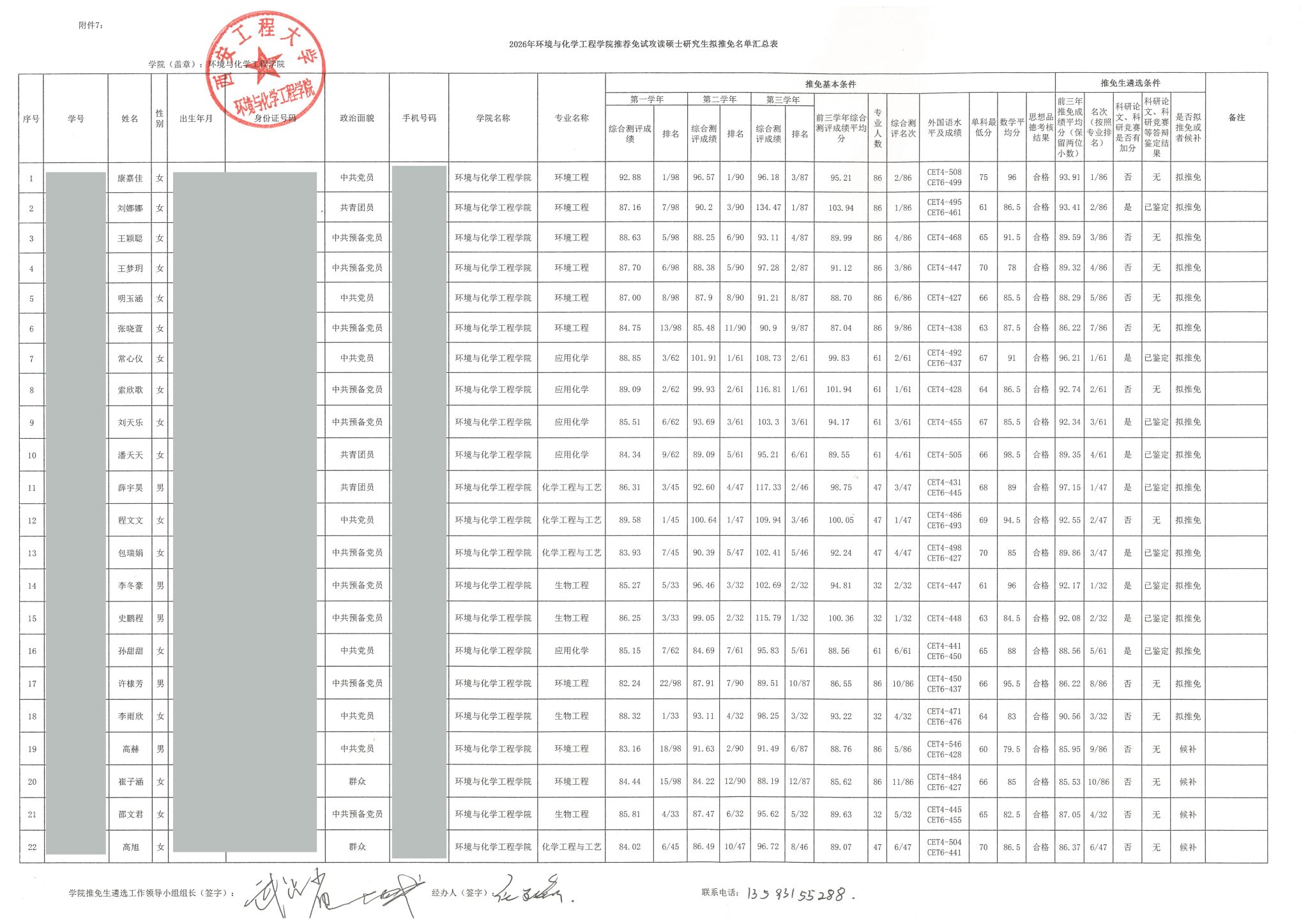 根據(jù)《關(guān)于做好我校2026年推薦優(yōu)秀應(yīng)屆本科畢業(yè)生免試攻讀碩士學(xué)位研究生工作的通知》等系列文件要求,我院制定并下發(fā)了《環(huán)境與化學(xué)工程學(xué)院2026年推薦優(yōu)秀應(yīng)屆本科畢業(yè)生免試攻讀碩士學(xué)位研究生工作實(shí)施方案》。經(jīng)個(gè)人申請、資格審查、推免生遴選工作領(lǐng)導(dǎo)小組審核等程序,擬推薦康嘉佳等18人獲免試攻讀碩士學(xué)位研究生資格,備選4人,如出現(xiàn)已取得推免資格學(xué)生放棄推免等情況,則由備選名單中依次進(jìn)行遞補(bǔ)。現(xiàn)將推薦結(jié)果及個(gè)人成績、排名等信息予以公示。(詳見附表)