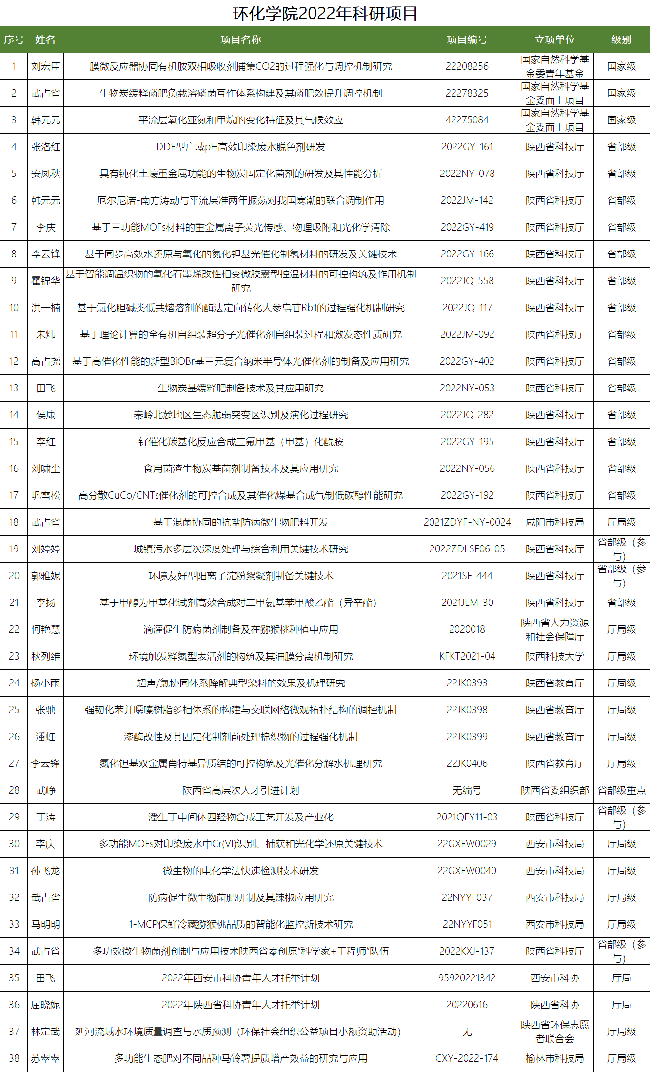 環(huán)化學(xué)院2022年科研項(xiàng)目