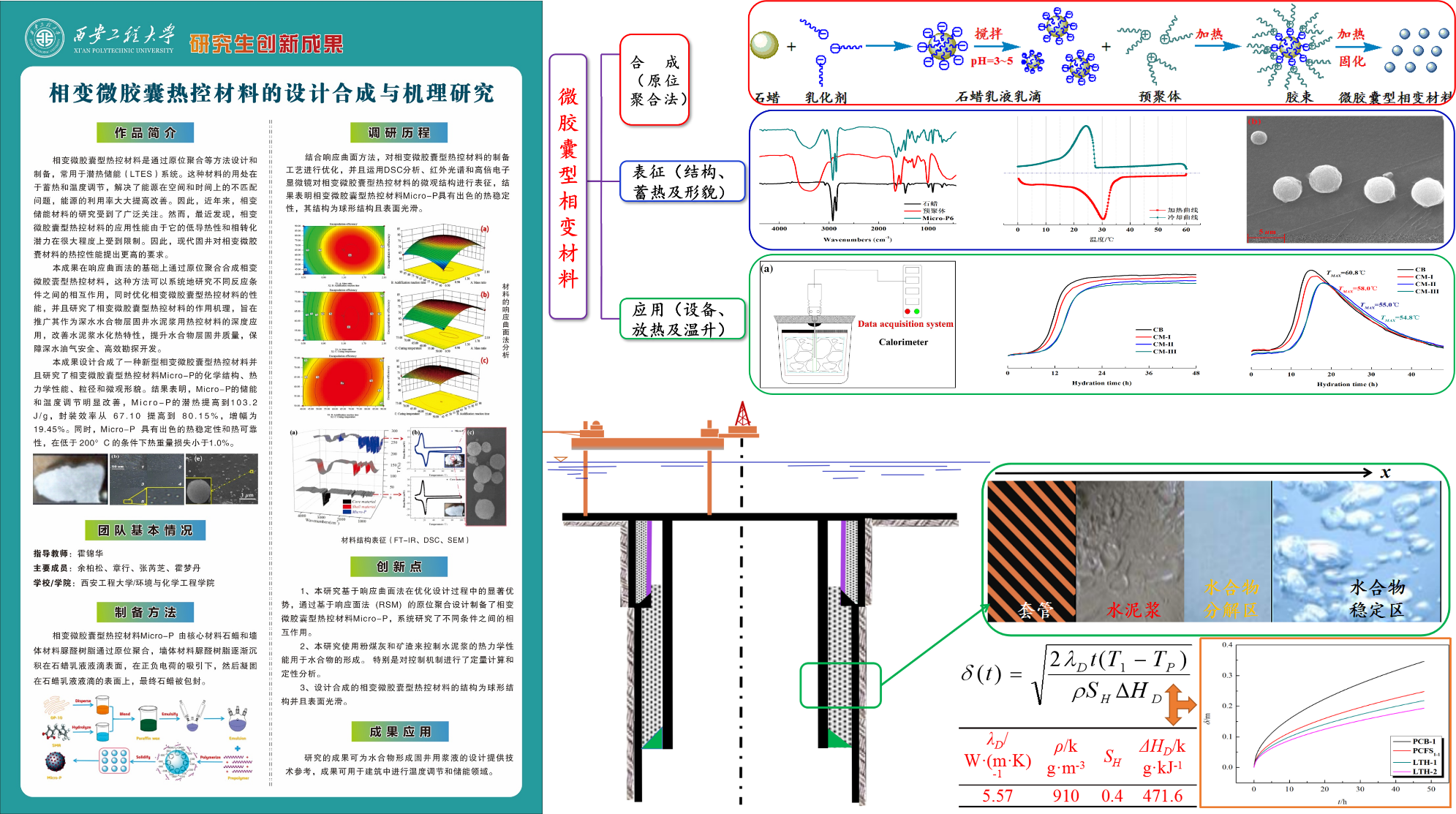 本成果的創(chuàng)新點(diǎn)在于利用響應(yīng)曲面法在優(yōu)化設(shè)計(jì)過程中的顯著優(yōu)勢,基于響應(yīng)面法(RSM)制備了相變微膠囊型熱控材料Micro-P,系統(tǒng)研究了不同條件之間的相互作用,利用相變微膠囊型控溫材料成功實(shí)現(xiàn)了對(duì)水泥漿體系水化放熱和水化溫升的有效控制。