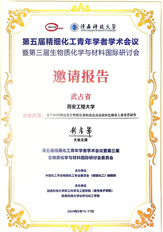 我院武占省教授受邀參會并擔任分會場主持人,在會議中受邀作了題為“基于MOF固定化生物催化劑構建及其高效轉化稀有人參皂苷研究”的學術報告。會后,武占省教授圍繞如何開發(fā)高效生物催化劑與參會的專家及代表進行了深入的交流與討論。