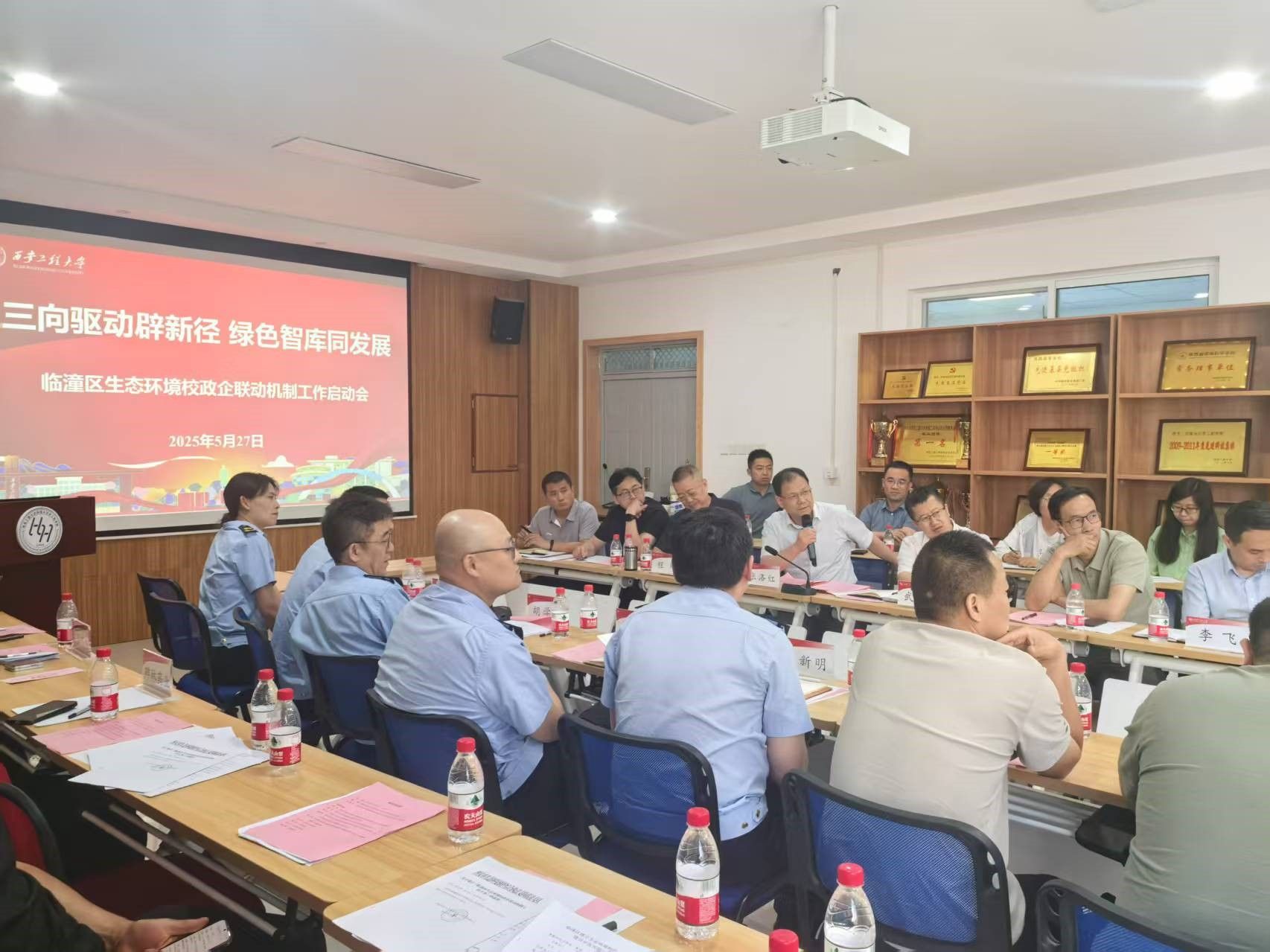 5月27日,由西安市生態(tài)環(huán)境局臨潼分局牽頭、西安工程大學(xué)深度參與的生態(tài)環(huán)境“校政企”聯(lián)動機(jī)制首次聯(lián)席會議在環(huán)境與化學(xué)工程學(xué)院507會議室召開。本次活動以“三向驅(qū)動辟新徑,綠色智庫同發(fā)展”為主題,匯聚高校科研力量、政府執(zhí)法智慧與企業(yè)實(shí)踐需求,共同探索生態(tài)治理與產(chǎn)教融合協(xié)同發(fā)展新路徑。西安工程大學(xué)副校長張洛紅、環(huán)境與化學(xué)工程學(xué)院主持工作副院長武占省、城市規(guī)劃與市政工程學(xué)院主持工作副院長房平、教師代表與臨潼分局大隊長胡學(xué)剛及執(zhí)法人員、50余家企業(yè)負(fù)責(zé)人出席。