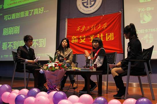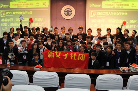 2011年10月26日下午四點(diǎn),應(yīng)西安工程大學(xué)環(huán)化學(xué)院新女子社團(tuán)的邀請(qǐng),著名著名作家饒雪漫和西嶺雪在我校臨潼校區(qū)圖書館二樓報(bào)告廳和廣大學(xué)生見面共話青春。