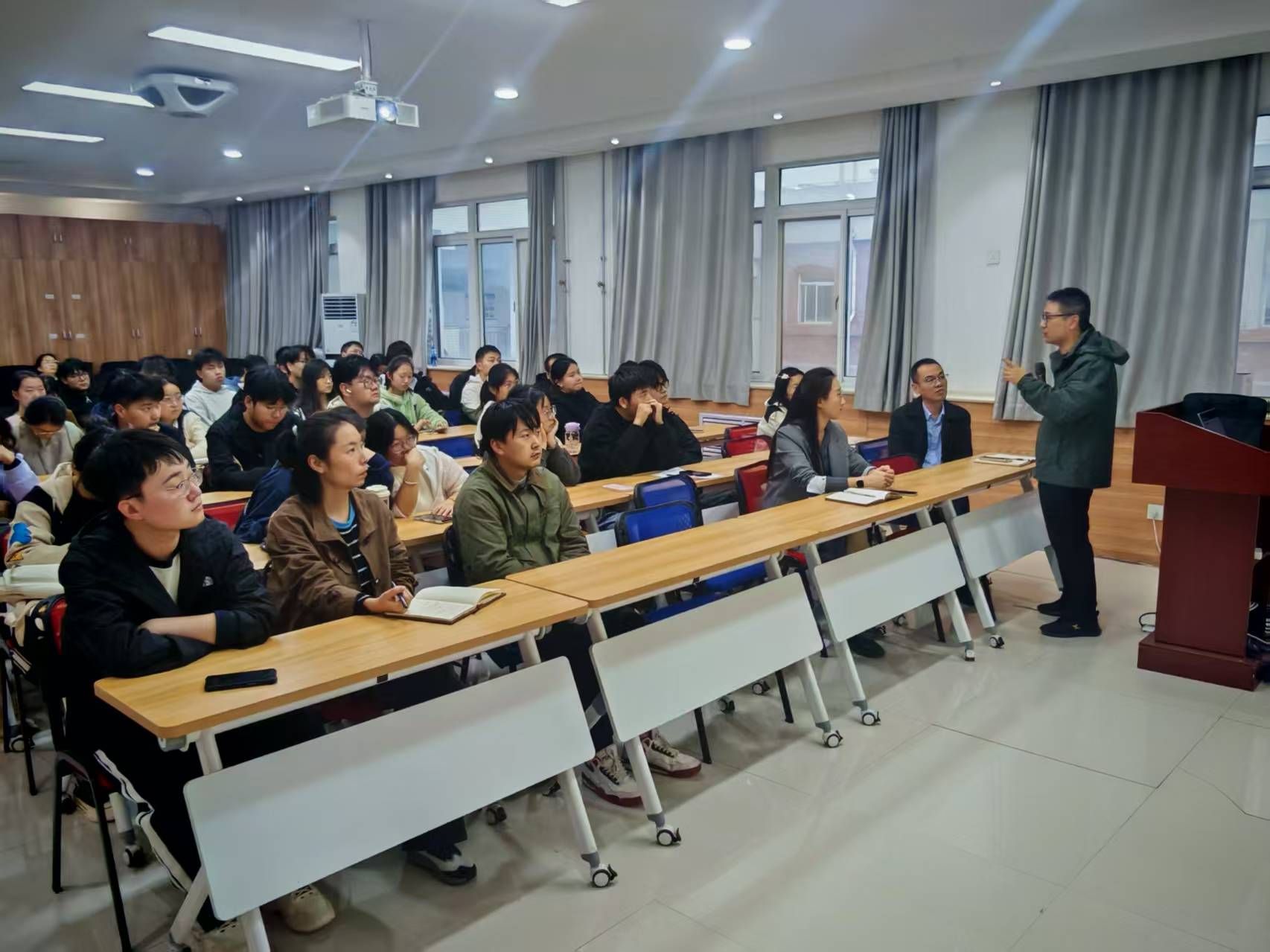 講座尾聲,學(xué)院黨委副書記林定武作總結(jié)發(fā)言。他引用了“仰望星空,腳踏實(shí)地”的箴言,勉勵(lì)同學(xué)們既要懷揣遠(yuǎn)大理想,更要立足自身實(shí)際情況,客觀評(píng)估個(gè)人能力,選擇最適合自己的院校。他特別強(qiáng)調(diào),考研復(fù)習(xí)“在精不在多”,關(guān)鍵在于吃透核心知識(shí)點(diǎn),構(gòu)建完整的知識(shí)體系,實(shí)現(xiàn)高效備考。