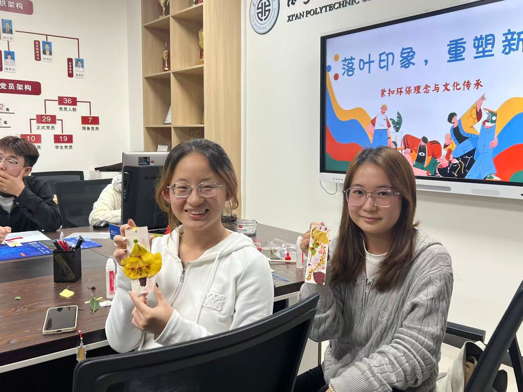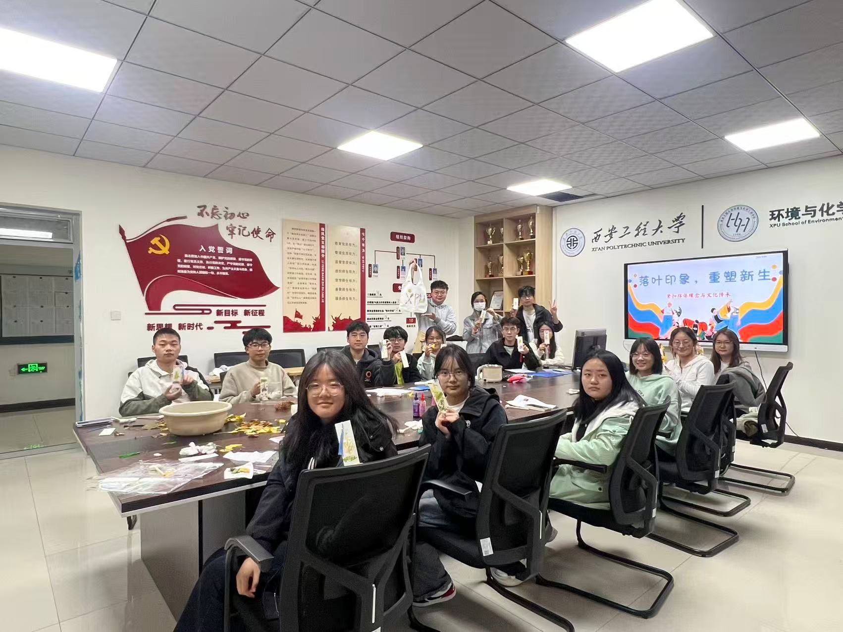 活動(dòng)現(xiàn)場(chǎng),同學(xué)們熱情高漲。在小導(dǎo)師介紹完拓印步驟后,同學(xué)們紛紛挑選心儀的落葉,展開創(chuàng)意構(gòu)思。有的將樹葉巧妙疊放,拓出層林盡染的秋日畫卷;有的巧妙融合黏土與顏料,將金秋韻味定格于方寸之間;更有同學(xué)別出心裁,以落葉拼出“XPU”字樣,將對(duì)母校的深情凝聚在這獨(dú)特的自然印記中。