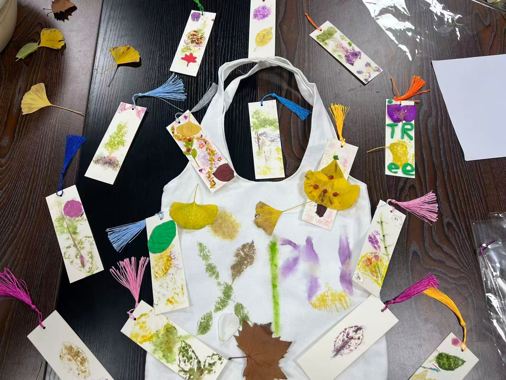 活動(dòng)前期,手工小導(dǎo)師毛姍妮同學(xué)精心籌備,提前收集校園內(nèi)形態(tài)各異的銀杏葉、梧桐葉等落葉及花瓣,并準(zhǔn)備了書簽、拓印工具、顏料等材料,為同學(xué)們營(yíng)造了沉浸式的手工創(chuàng)作環(huán)境。