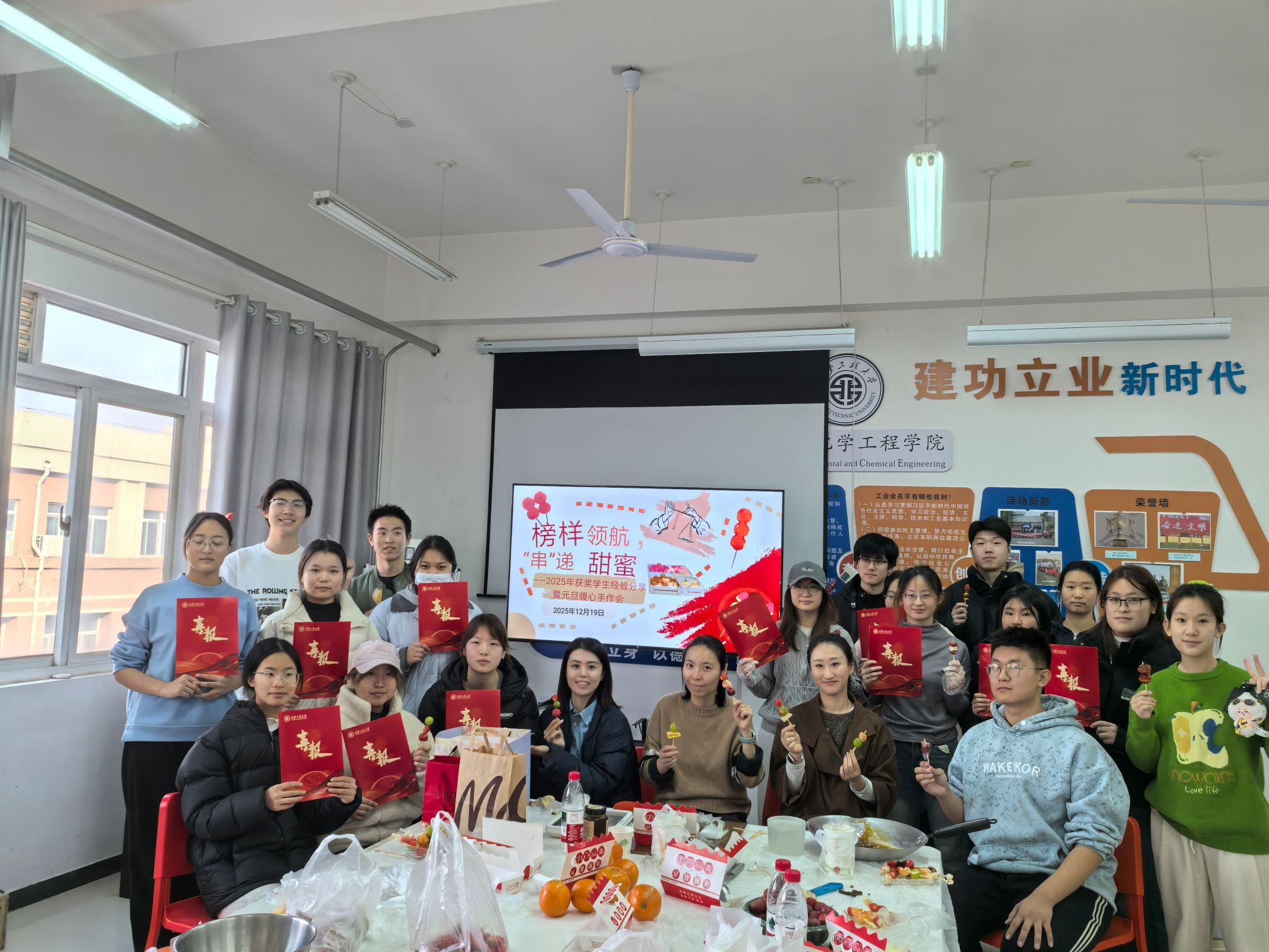 12月29日下午,我院在環(huán)化樓502活動(dòng)室舉辦“榜樣領(lǐng)航,‘串’遞甜蜜”師生座談暨元旦手作活動(dòng)。活動(dòng)邀請國家獎(jiǎng)學(xué)金、國家勵(lì)志獎(jiǎng)學(xué)金及校長獎(jiǎng)學(xué)金獲獎(jiǎng)學(xué)生代表與教師座談交流,并共同制作冰糖葫蘆,傳遞節(jié)日溫情。學(xué)工辦主任朱瑾、資助輔導(dǎo)員蓋瀟宇、2022級(jí)輔導(dǎo)員任子瑜出席本次活動(dòng)。