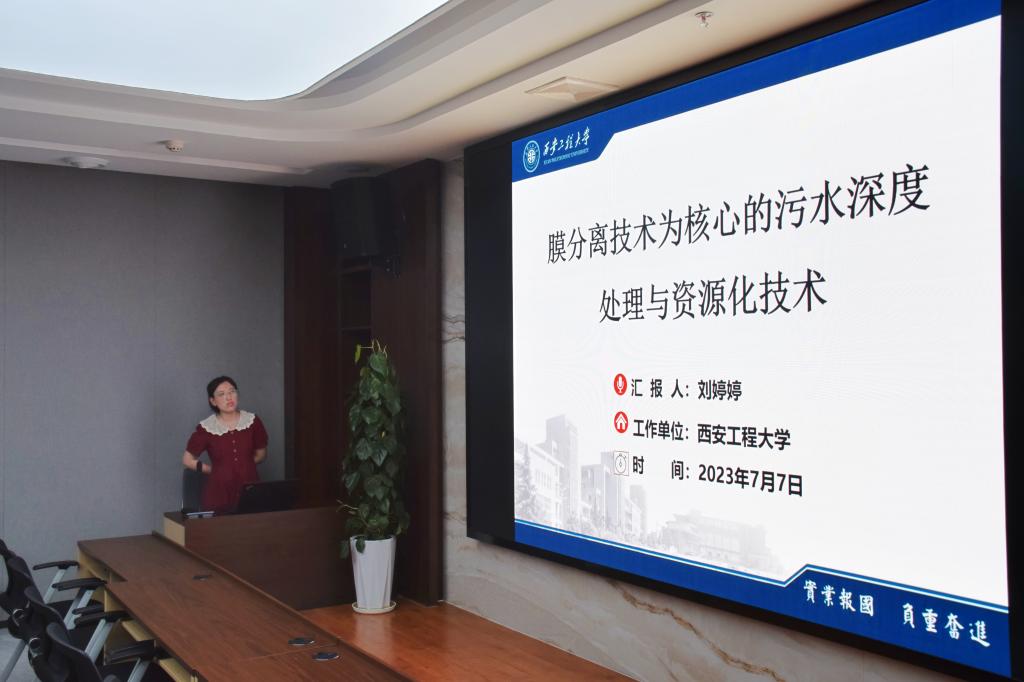 2023年7月7日上午9:00-12:00在咸陽高新區(qū)舉行了西安工程大學(xué)環(huán)境與化學(xué)工程學(xué)院院地行活動(dòng),參加活動(dòng)的有:咸陽市科技局下屬國有企業(yè)秦創(chuàng)原(咸陽)創(chuàng)新促進(jìn)中心習(xí)斌、朱繼泉、姚琛,西安工程大學(xué)科技處處長張洛紅,環(huán)化學(xué)院黨委書記胡西民,副院長武占省以及環(huán)化學(xué)院教師代表,本次活動(dòng)包括了成果路演、座談交流和參觀三個(gè)環(huán)節(jié)。