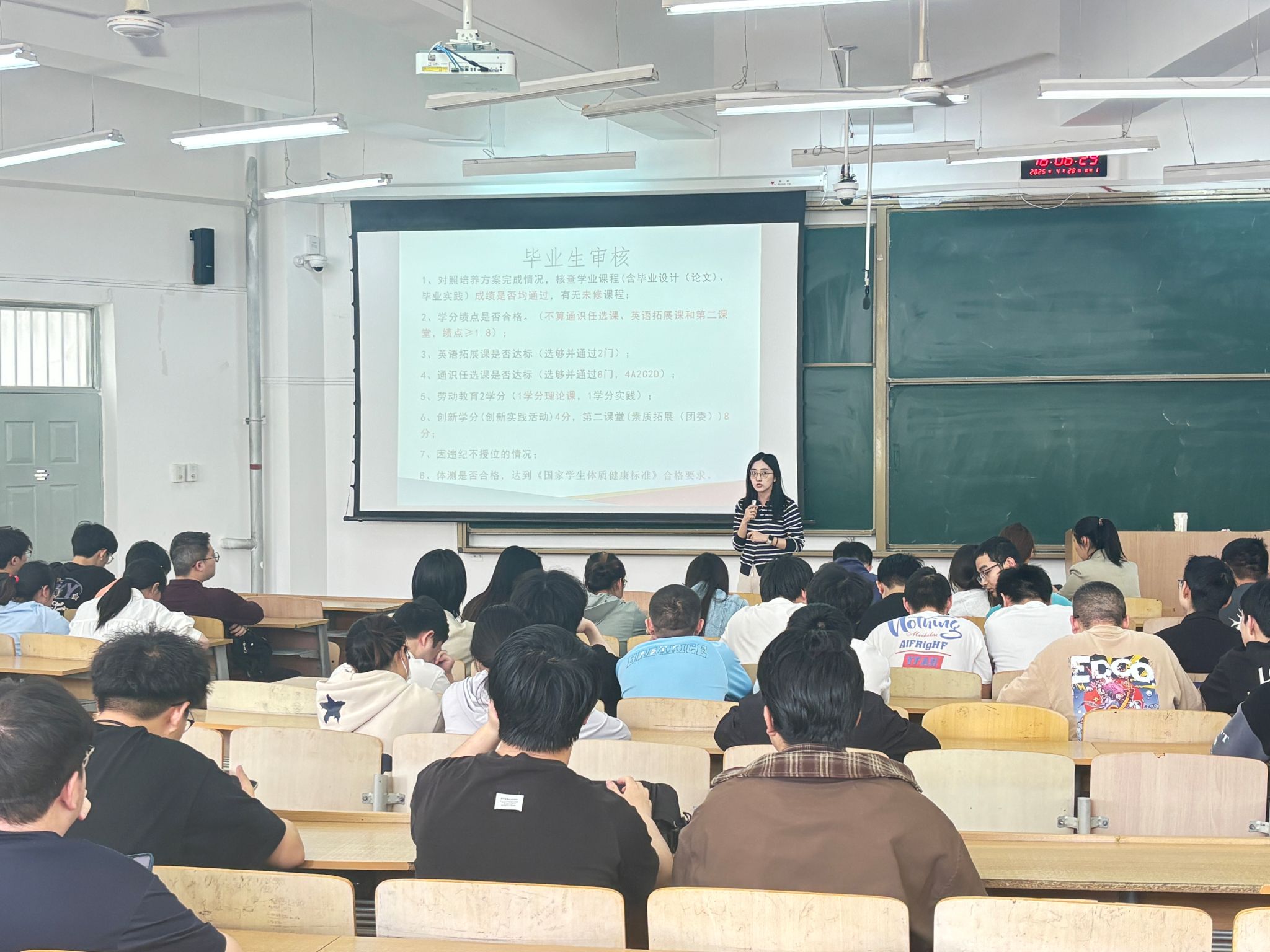 會上,教務(wù)員耿倩就畢業(yè)審查相關(guān)事項進行說明,畢業(yè)班輔導員就畢業(yè)生關(guān)心的西部計劃、高校畢業(yè)生應征入伍等政策進行解讀。接下來,學院將繼續(xù)加強訪企拓崗工作,努力挖掘就業(yè)崗位,為學生精準推送可靠招聘信息,全力護航畢業(yè)生走穩(wěn)就業(yè)路。