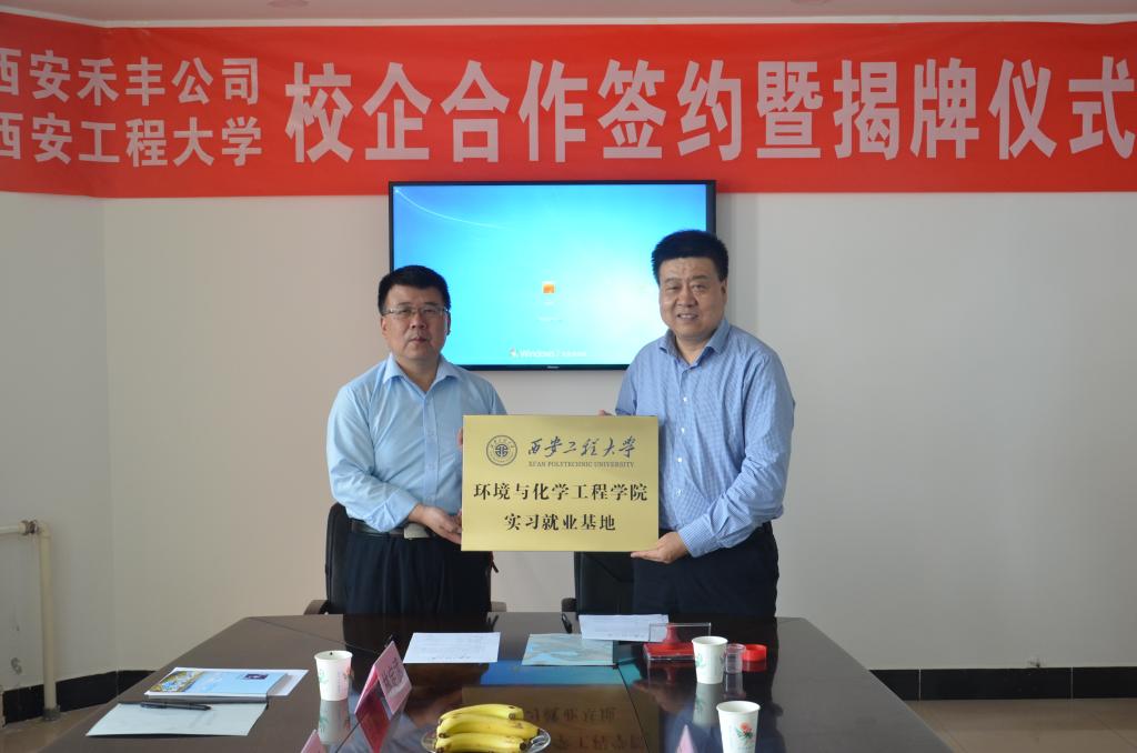 2019年4月25日下午,我院與西安禾豐科技有限公司校企合作簽約暨揭牌儀式在西安禾豐科技有限公司舉行,環(huán)化學(xué)院黨委書記李建學(xué)與禾豐牧業(yè)運(yùn)營二區(qū)總監(jiān)強(qiáng)志銳簽訂了實(shí)習(xí)就業(yè)協(xié)議,環(huán)化學(xué)院林定武、王曉軍、原龍老師,禾豐人事經(jīng)理徐璐玲、總經(jīng)理助理馮鵬剛、營業(yè)室副經(jīng)理史良、韓少英等參加了簽約揭牌儀式。