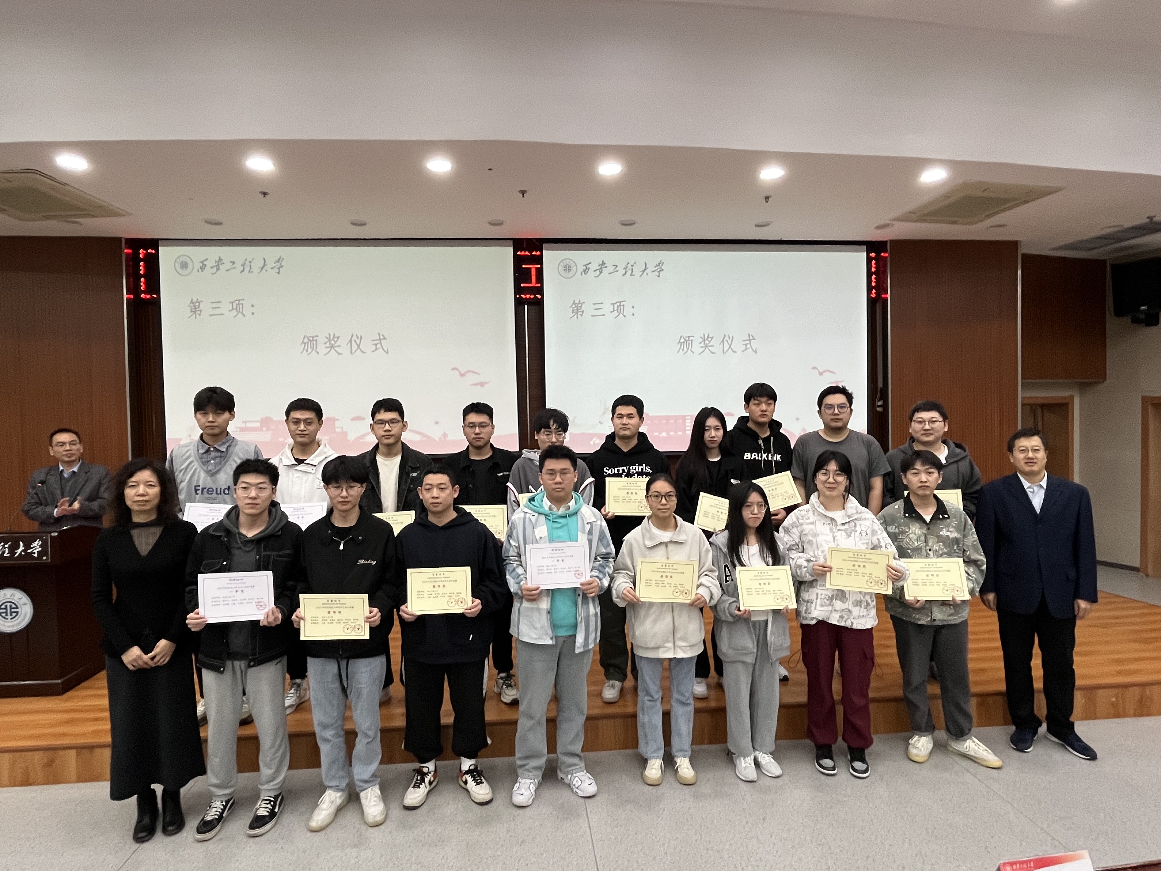 接著副院長(zhǎng)常薇宣讀了獲獎(jiǎng)情況,與會(huì)領(lǐng)導(dǎo)和老師為參賽獲獎(jiǎng)團(tuán)隊(duì)頒獎(jiǎng)。獲獎(jiǎng)學(xué)生鄭鈞耀代表團(tuán)隊(duì)發(fā)言。