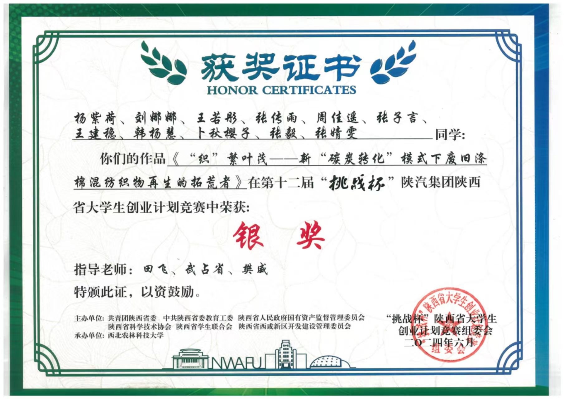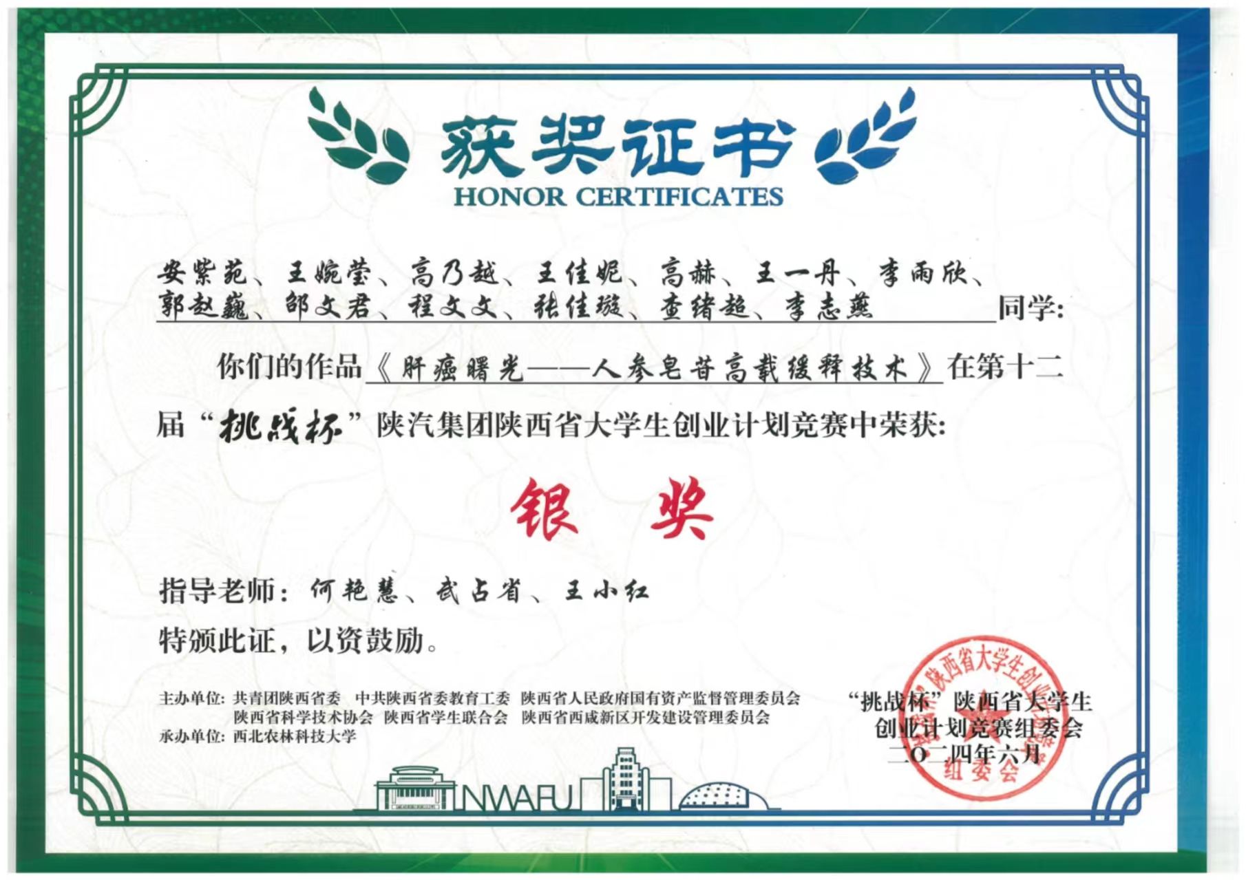 6月7日,第十二屆“挑戰(zhàn)杯”陜汽集團(tuán)陜西省大學(xué)生創(chuàng)業(yè)計(jì)劃競(jìng)賽閉幕式暨頒獎(jiǎng)儀式于西北農(nóng)林科技大學(xué)舉行。我院4個(gè)項(xiàng)目進(jìn)入決賽,均獲得銀獎(jiǎng),實(shí)現(xiàn)了獲獎(jiǎng)數(shù)量的突破。