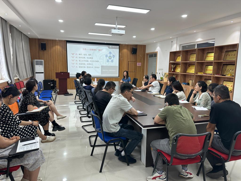 分享會(huì)上,趙婧老師圍繞競(jìng)賽簡(jiǎn)介、賽前準(zhǔn)備、教學(xué)設(shè)計(jì)和賽后感悟幾個(gè)方面做了精彩深入的講解,對(duì)比賽的評(píng)分細(xì)則進(jìn)行分解,并針對(duì)教學(xué)設(shè)計(jì)中的教學(xué)目標(biāo)、教學(xué)內(nèi)容、教學(xué)過程、教學(xué)手段等方面分享了自己實(shí)用的參賽經(jīng)驗(yàn),幫助與會(huì)青年教師精準(zhǔn)對(duì)接比賽要求,積極備賽。參會(huì)教師與趙婧老師進(jìn)行熱烈討論,紛紛表示深受啟發(fā),受益匪淺。