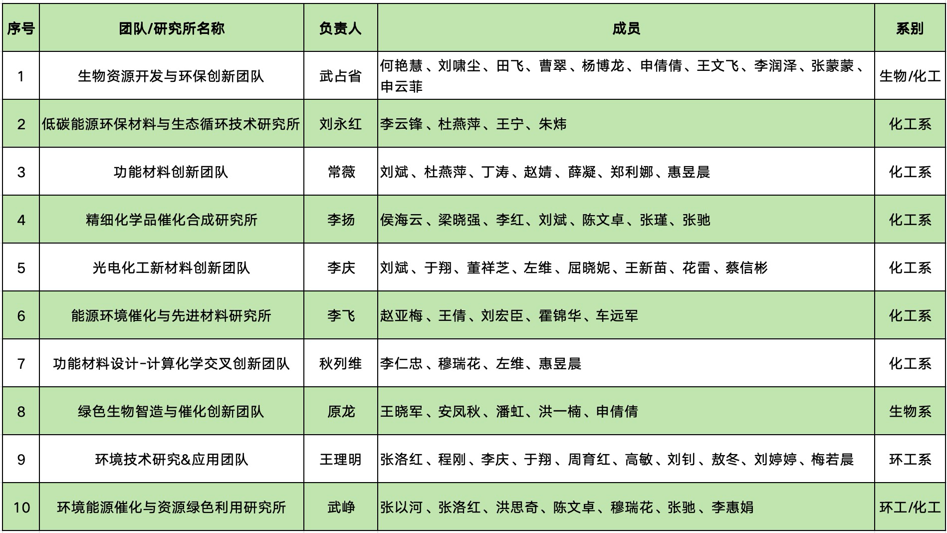 XPU環(huán)境與化學工程學院 科研創(chuàng)新團隊一覽表