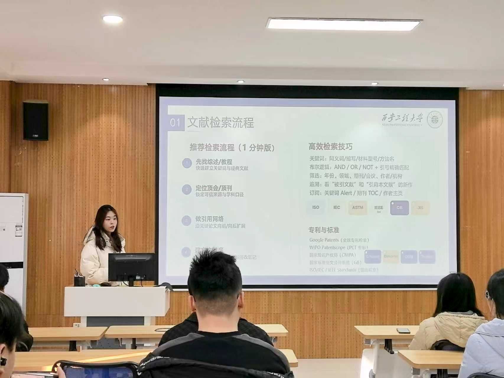 在分享環(huán)節(jié)中,薛玉香從文獻檢索入手,系統(tǒng)介紹了常用學術(shù)網(wǎng)站與工具,并結(jié)合自身科研實踐,講解了如何高效獲取與整理文獻。林川則從科研與競賽雙重角度展開,以生動比喻拆解論文寫作邏輯,并分享了參與學科競賽的實戰(zhàn)經(jīng)驗。他強調(diào),項目選題應(yīng)緊扣國家戰(zhàn)略與熱點,團隊分工需明確,答辯呈現(xiàn)要邏輯清晰、簡明有力。馮曉凱按研究生學習階段展開分析:研一應(yīng)夯實基礎(chǔ)、廣泛閱讀、確定方向;研二則需注重“小目標”積累,逐步突破科研瓶頸,同時通過有效溝通推動課題進展。