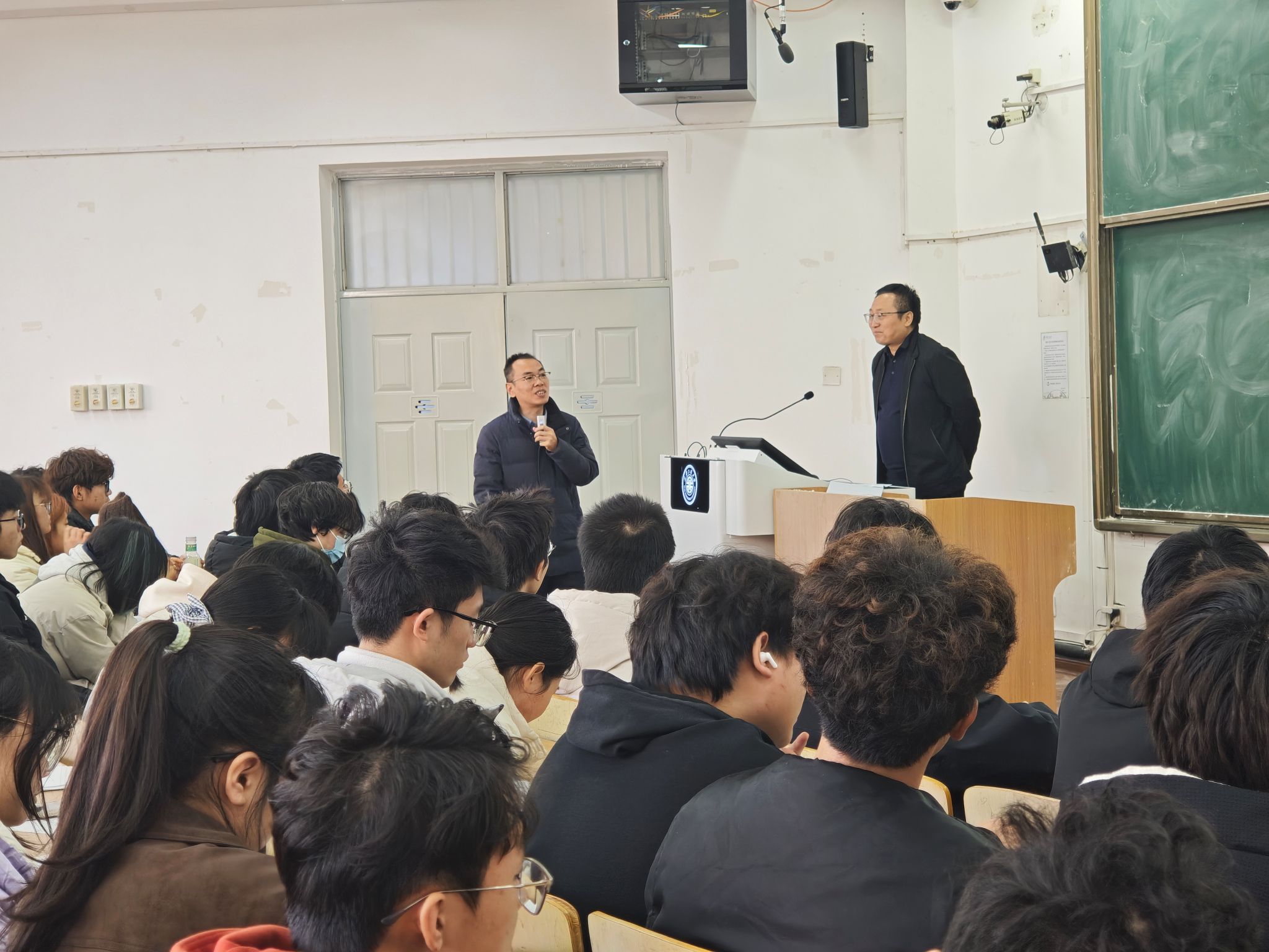 12月16日,我院第十九期“綠風(fēng)·環(huán)化論壇”于臨潼校區(qū)教學(xué)樓B135教室圓滿舉行。本次論壇特邀陜西環(huán)保集團(tuán)中圣環(huán)境公司黨委書記、董事長、我校95級(jí)環(huán)境工程專業(yè)校友郭治敏先生重返母校,以“人生·專業(yè)·未來”為主題,為2025級(jí)環(huán)境工程專業(yè)學(xué)生帶來了一場(chǎng)內(nèi)涵深刻、視野開闊的專題報(bào)告。學(xué)院黨委副書記林定武、2025級(jí)輔導(dǎo)員呂國正出席活動(dòng),報(bào)告會(huì)由環(huán)境科學(xué)與工程系副主任王理明主持。